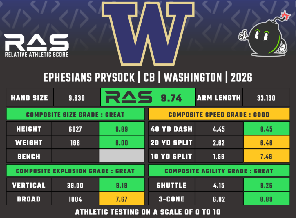 Day 3 is where teams start looking at traits more than anything and man, it’s hard to dislike what Prysock has put on paper this offseason.