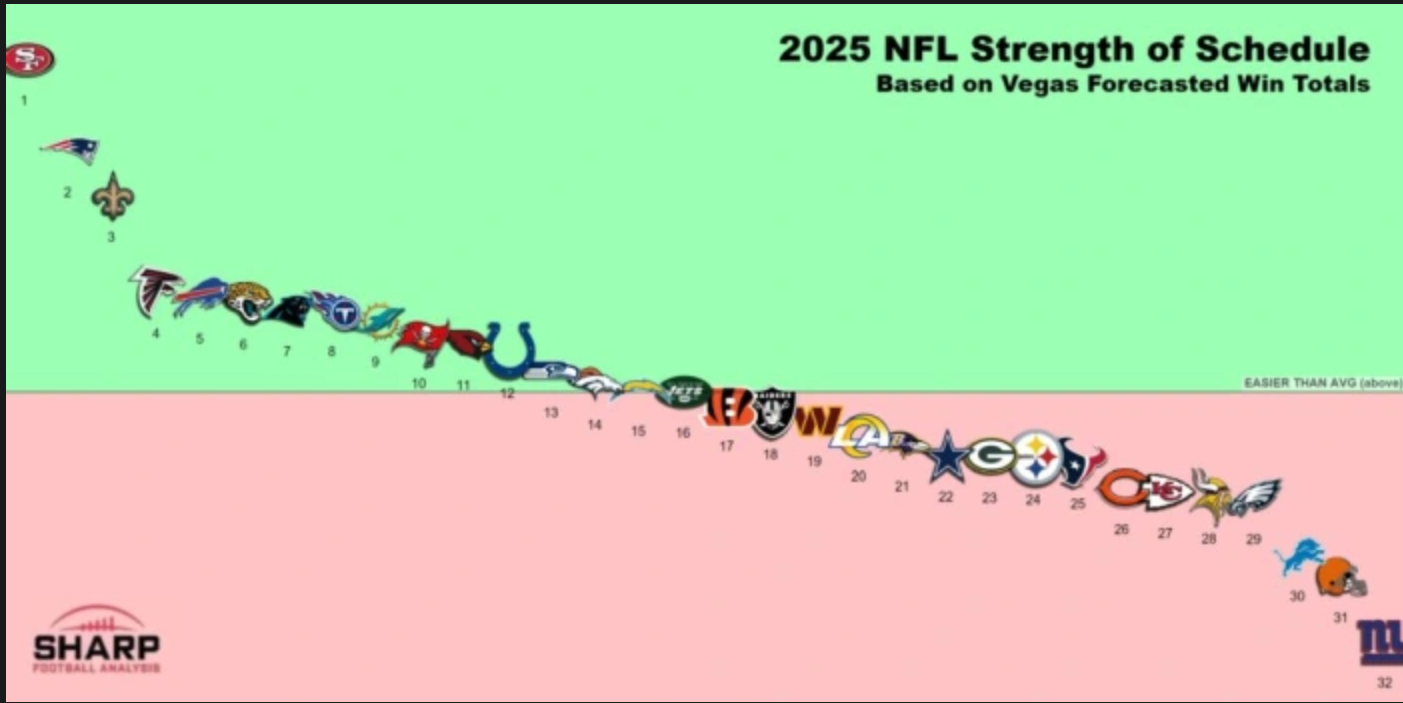 Strength of schedule (based off Vegas win totals, not 2024 record