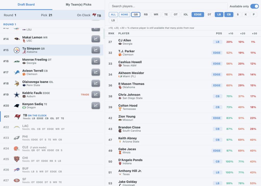 The Buccaneers would mitigate that by trading back in the first round of the draft. At 21, all of them should be there.