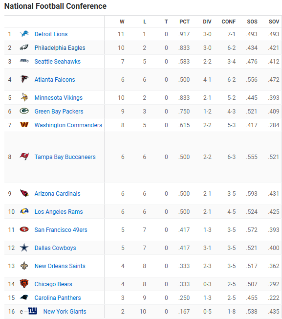 The reason the Bucs again control their playoff destiny is based on a handful of factors.  First, the Falcons and the Washington Commanders – who the Bucs are also chasing for the final Wild Card spot in the NFC – will play each other later this season.  Regardless of if one team wins or if they tie, the Bucs would pass one of them if they keep winning.  Remember, Tampa Bay holds the head-to-head tiebreaker over the Commanders by virtue of their 37-20 win back in Week 1.