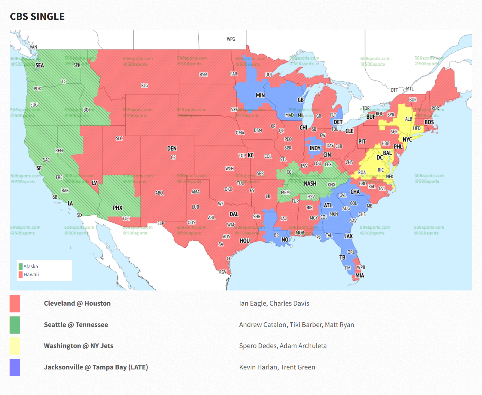 However, as both teams lead their divisions, there is plenty of interest among both their fan bases and several other playoff contenders.  Per 506Sports.com, the game will be seen in large parts of the Southeast and the North.