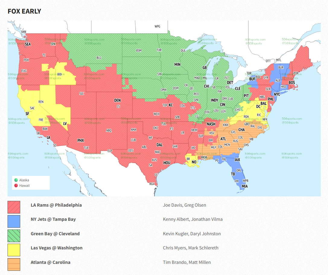For fans in the state of Florida and parts of the Northeast, the answer is yes, per 506 Sports. Kenny Albert and Jonathan Vilma, who were on the call for the Bucs’ opener against Atlanta, will handle the broadcasting duties here for FOX.