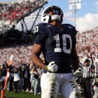In his fourth and final year of college, he tried out in the spring to swap back to offense, and things went well. He told us Saturday he felt he’d hit a bit of a wall on the defensive side of the ball and wanted to get back to the side he played in high school. He became a tight end and put up over 500 yards of offense on 44 catches in 2025.