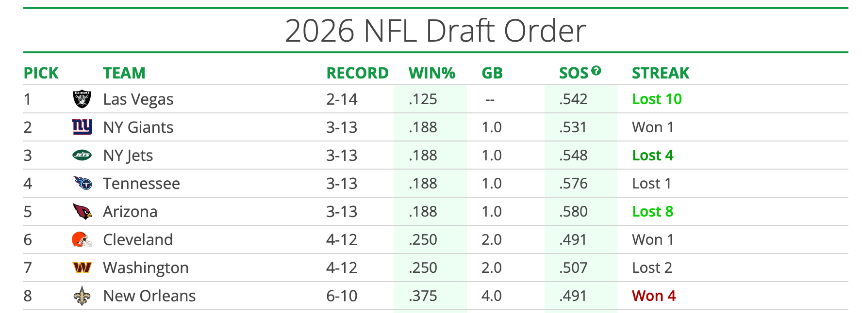 The absolute best-case scenario, for the highest possible draft pick, which is highly unlikely, is that the Commanders lose, and the Browns, New York Giants, New York Jets, and Arizona Cardinals all win. The Commanders would move up a spot for every win by any of those teams, and the absolute ceiling is the No. 2 overall pick.