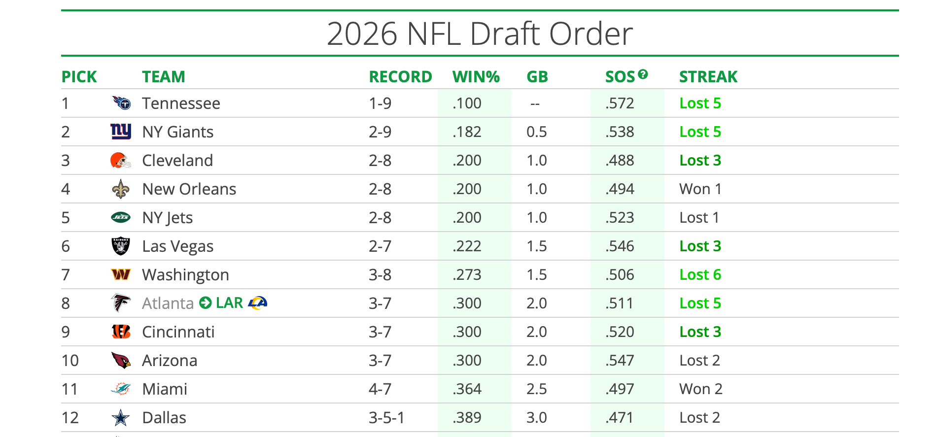 The Commanders’ loss to the Dolphins does help their draft order, as they now have a worse record than Miami. The Dolphins had the seventh overall pick and the Commanders had the eighth pick, and now Washington jumps up to seventh, while Miami falls all the way to 11th. The Commanders can jump the Las Vegas Raiders to sixth overall if they beat the Dallas Cowboys on Monday Night Football, making their record 3-7.