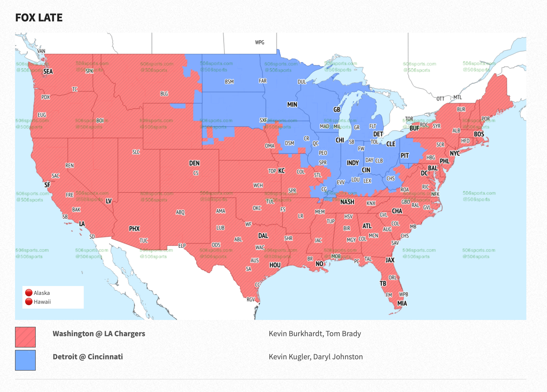 The Commanders vs Chargers broadcast map for FOX.