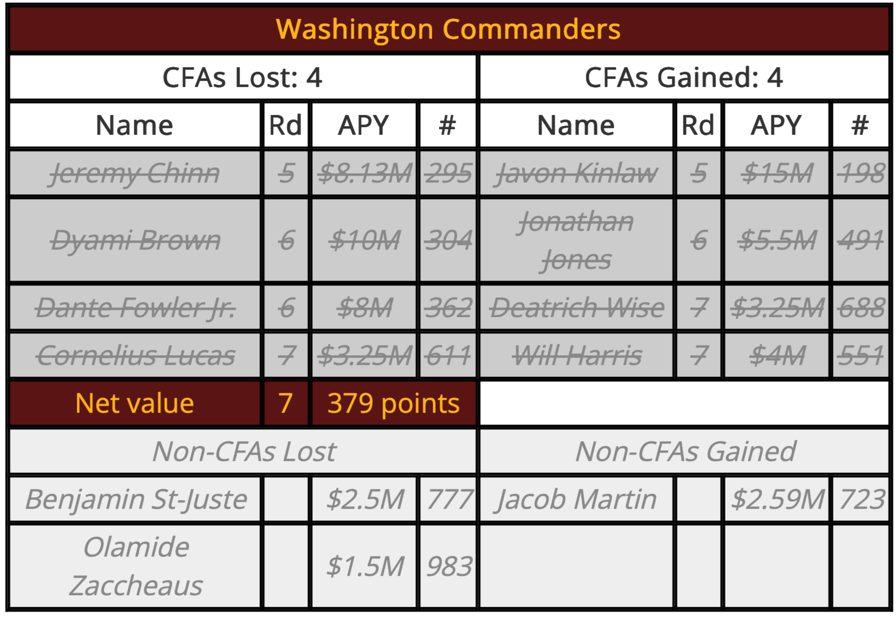 The downside, however, is that the NFL only gives out 32 compensatory picks, so some teams will unfortunately miss the 32 pick limit, and the Commanders could be one of those teams, depending on Fowler’s performance and how things turn out for every other team. There’s still a lot of season left, but we will have to watch what happens.