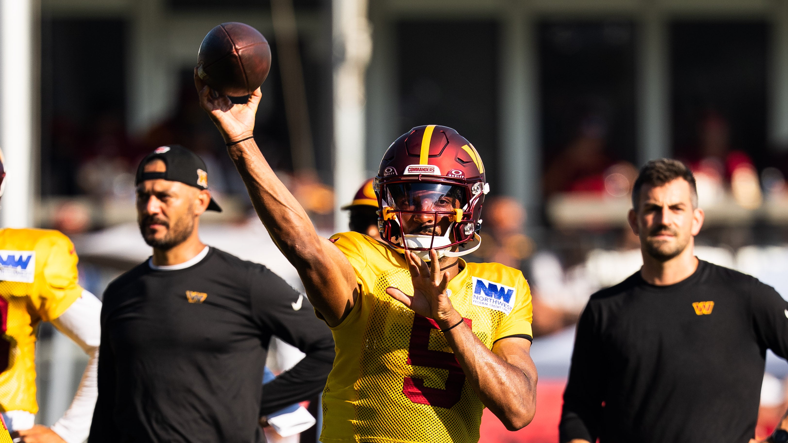 Commanders Training Camp Takeaways: First day of padded practice leads to vital position group erasing doubt and Jayden Daniels making plays again
