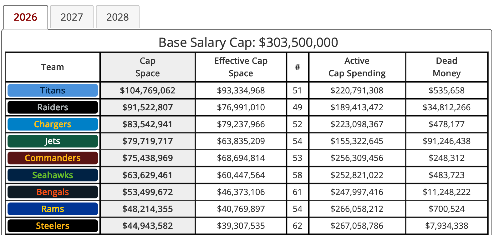 They can also extend Laremy Tunsil to create more, and there’s a giant elephant in the room with Daron Payne set to make a team-high $28 million in 2026. The bottom line is that they have plenty of salary cap space to actually be active and can create even more.