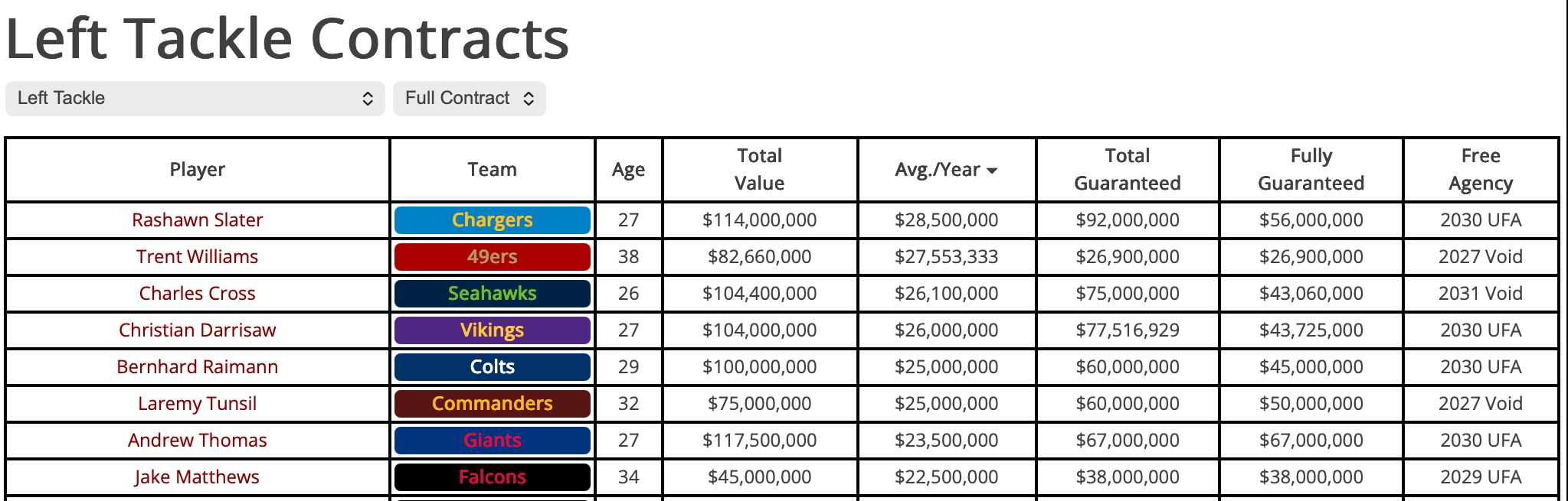 He could also just play the waiting game, let Williams make $30 million or more per year this offseason, and then try to beat that with a slightly higher number. Peters said multiple times that he wants to get a deal done sooner rather than later, but Tunsil could just wait it out until Williams figures out his own dispute, and possibly resets the market first.