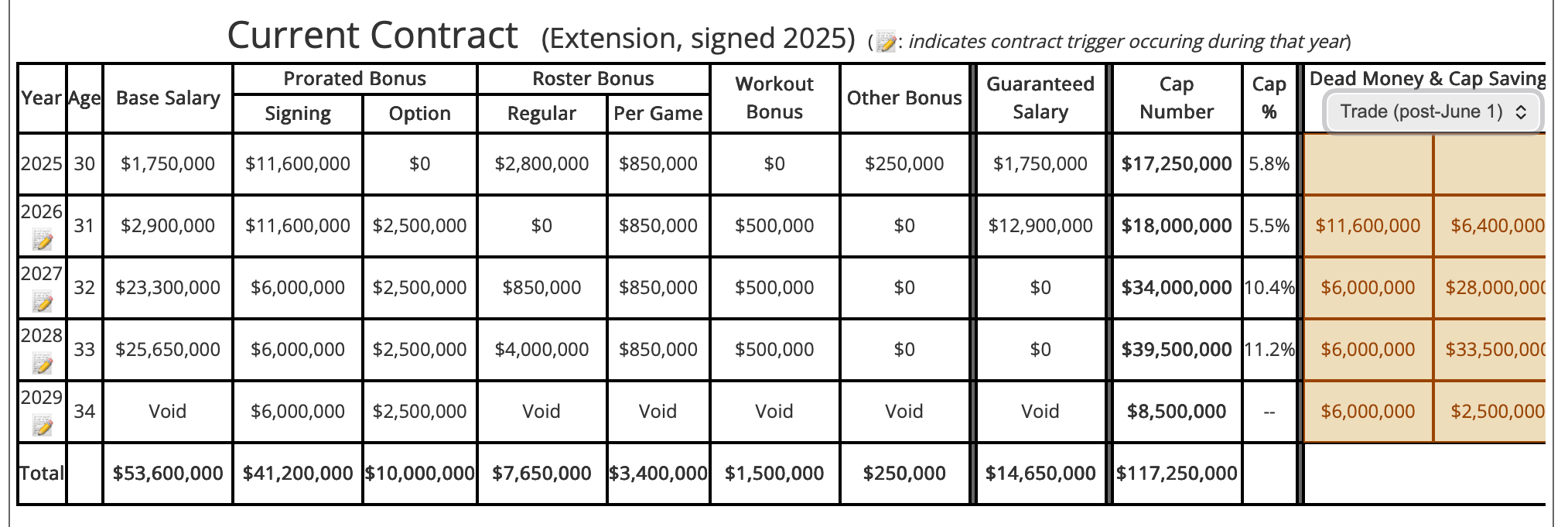McLaurin will be a prime trade candidate after the season, which would save $28 million if it’s a post-June 1st trade, or a $16 million savings if it’s before June 1st. The best-case scenario is that McLaurin bounces back in 2026 after an injury-riddled 2025, and he fetches the Commanders a high enough draft pick on the market in a trade.