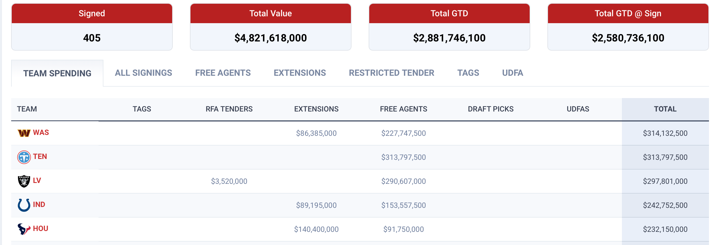 The Commanders were the biggest spenders this offseason
