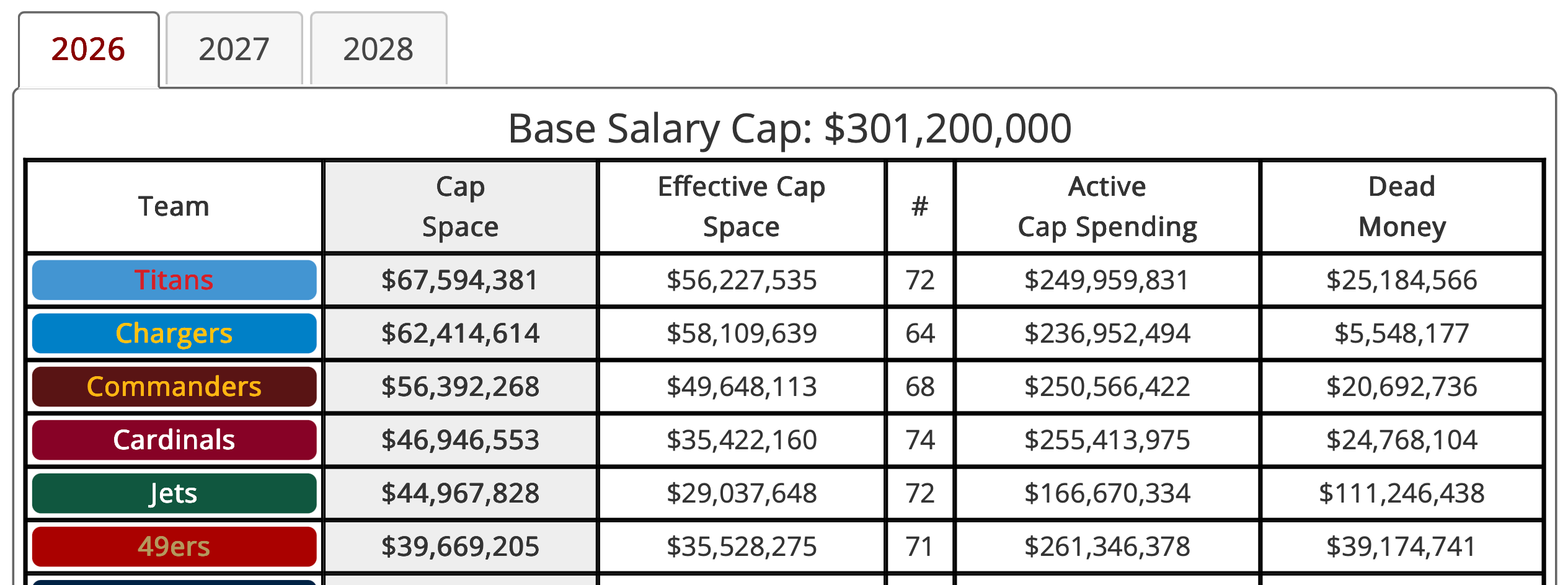 Peters put together a masterclass in free agency, but he does have many difficult decisions to make for 2027. Terry McLaurin has a team-high cap hit of $34 million in 2027, which is why it could be his final season. But for 2026, the salary cap is in a much better place, and people expect it to be after being the top spending team this offseason.